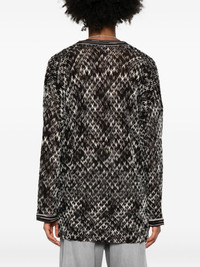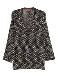 geometric-pattern V-neck sweater Highlights - Black - Geometric pattern - V-neck - Three-quarter sleeves - Ribbed trims - Open weave - The item you receive may differ slightly from the item photographed. this is due to the artisanal nature with which all missoni products are constructed. Made in Italy Composition Wool 54%, Viscose 46% SIZE & FIT Model measurements Height 5 ft 10 in(1.77 m) Bust/Chest 33.07 in(84 cm) Hips 37 in(94 cm) Waist 24.8 in(63 cm) Washing instructions Dry Clean Only