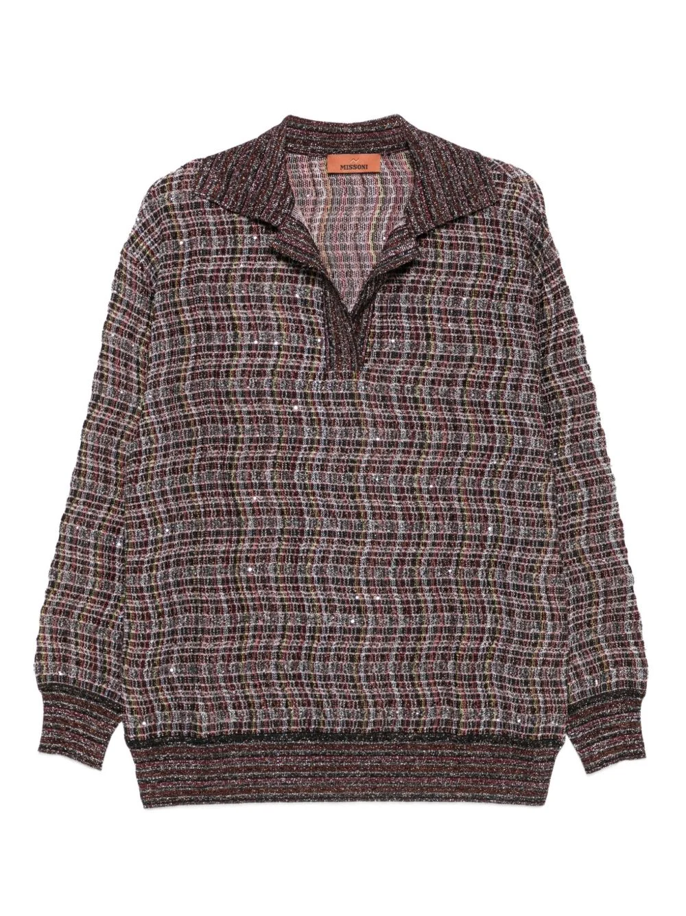 V-neck sweater Highlights - Dark brown - Textured knit - Polo collar - Long sleeves - Ribbed hem - The item you receive may differ slightly from the item photographed. this is due to the artisanal nature with which all missoni products are constructed. Made in Italy Composition Viscose 63%, Nylon 18%, Metallic Fibre 8%, Wool 7%, Cotton 3%, Polyester 1% SIZE & FIT Model measurements Height 5 ft 10 in(1.77 m) Bust/Chest 32.28 in(82 cm) Hips 35.03 in(89 cm) Waist 25.19 in(64 cm) Washing instructions Read Manufacturer Guidelines