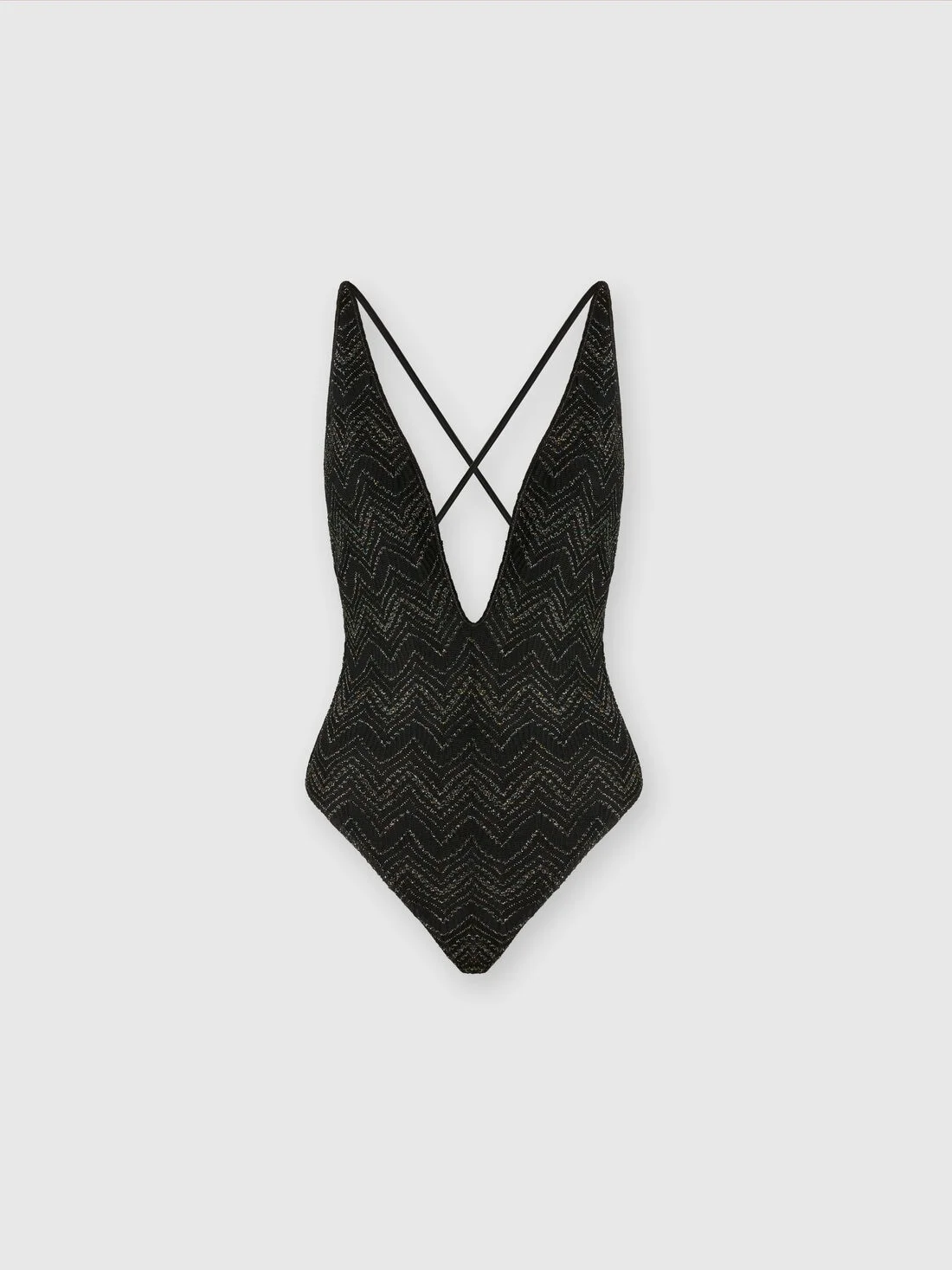 Wrapped in summer shine, the maison's one-piece swimsuit in viscose and lame enchants with its sensual V-neckline. The lightweight fabric and zigzag pattern create a sophisticated see-through effect, capturing the essence of Missoni style for an irresistible beach look. MORE DETAILS - Viscose and lame one-piece swimsuit - V-neck - Zigzag pattern Composition: EXTERNAL:91%Rayon, 9%Metal Fiber; LINING : 80%Polyamide, 20%Elastane Care instructions: Hand wash ; Do not tumble dry ; Do not dry clean ; Do not iron ; Do not bleach Made in: Italy Product ID MC22SP03BR00ZXS91N1
