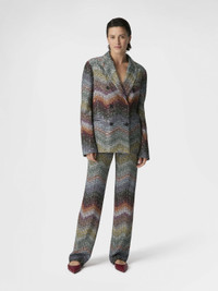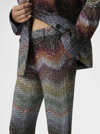 A piece with a luminous and refined spirit: these straight women’s trousers in viscose lame with sequins are woven on Caperdoni looms with an elegant zigzag pattern. MORE DETAILS - Women's straight-leg pants - Caperdoni loom workmanship - Zigzag weave - Viscose lame - Applied sequins Composition: EXTERNAL:69%Rayon, 16%Metal Fiber, 15%Polyamide; INTERNAL REINFORCEMENT:100%Polyamide; LINING : 100%Polyester Care instructions: Hand wash ; Do not tumble dry ; Dry flat ; Steam iron only ; do not soak ; Do not dry clean ; Do not iron ; Cool Hand Wash ; Do not bleach Made in: Italy Product ID DS26SI07BC005YS72P0