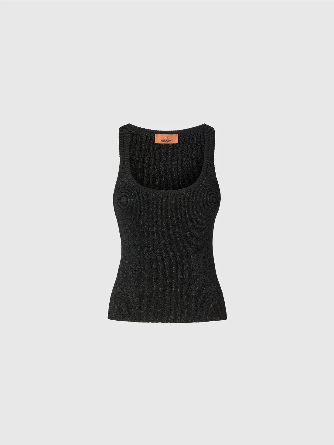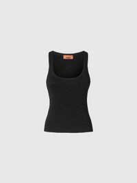 This simple yet sophisticated tank top reveals Missoni's unique approach to fashion. The viscose and lame fabric, light and luminous, rests gracefully on the silhouette, enhancing the harmony between comfort and style. A garment that embodies the maison's mastery in combining material innovation with iconic design MORE DETAILS - Palazzo cut trousers - Viscose processing - Lame filaments Composition: EXTERNAL:88%Rayon, 12%Metal Fiber Care instructions: Dry cleaning in tetrachloroethene - mild process ; Ironing maximum temperature 110°C - without steam ; Iron inside out ; Dry inside out ; Dry flat ; Do not tumble dry ; Do not wash ; Do not bleach Made in: Romania Product ID DS25SK0BBK045AS91NK