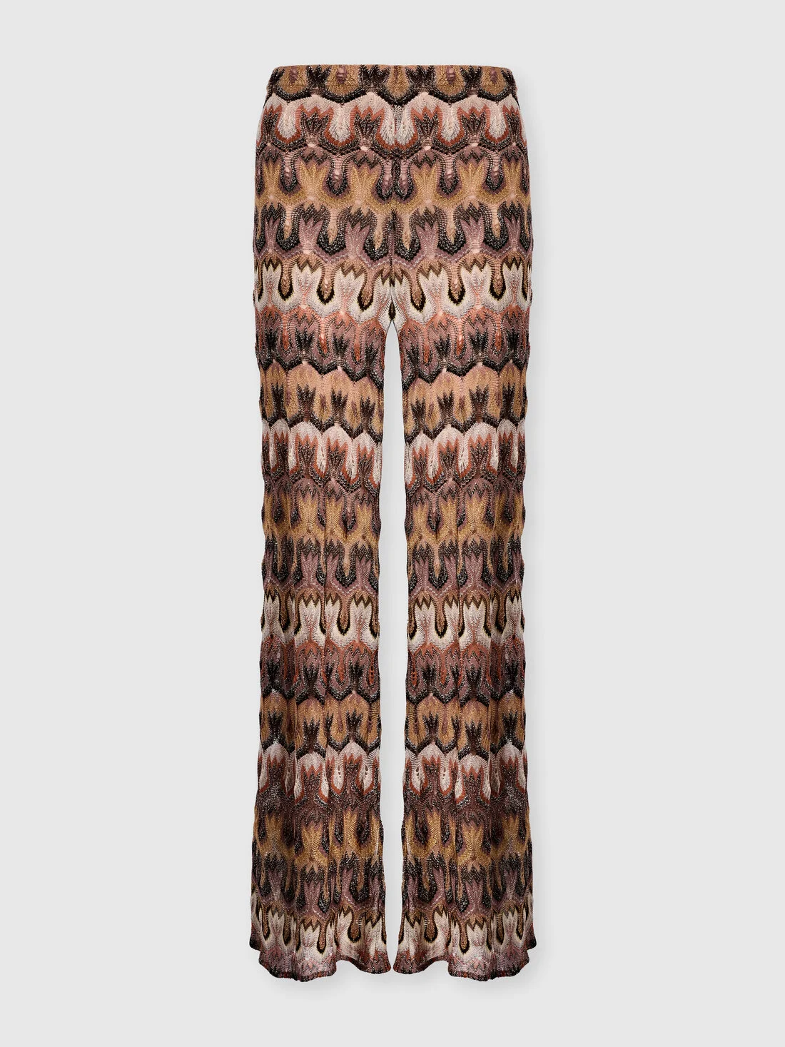 A piece with sophisticated allure: these women’s palazzo trousers in viscose lame feature refined raschel lacework with an arabesque motif. MORE DETAILS - Women's palazzo pants - Raschel lace knit with arabesque pattern - Viscose lame Composition: EXTERNAL:90%Rayon, 10%Metal Fiber; LINING : 77%Polyamide, 23%Elastane Care instructions: Ironing maximum temperature 110°C - without steam ; Dry cleaning in tetrachloroethene - mild process ; Do not tumble dry ; Dry flat ; Do not wash ; Do not bleach Made in: Italy Product ID DS26SI01BR014QS80ET