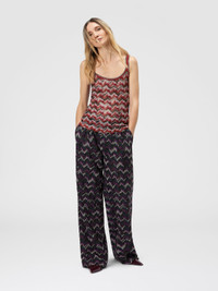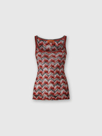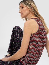 A women’s tank top with a refined spirit, featuring a round neckline and raschel lace design that echoes Missoni’s iconic zigzag. Made from viscose blend with lame threads, it combines light and texture in a perfect balance of elegance and stylistic identity. MORE DETAILS - Tank top with round neckline - Raschel knit in embroidered lace - Viscose blend with lame threads Composition: EXTERNAL:89%Rayon, 11%Metal Fiber Care instructions: Ironing maximum temperature 110°C - without steam ; Dry cleaning in tetrachloroethene - mild process ; Dry flat ; Do not tumble dry ; Do not wash ; Do not bleach Made in: Italy Product ID DS25WK07BR012PS4175