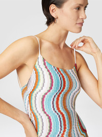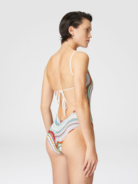 Straight neckline one-piece swimsuit featuring the iconic wave motif. Made with raschel processing, it offers a light and structured texture, enriched with lurex yarns that give shine. The classic cut ensures a snug and comfortable fit. MORE DETAILS - One-piece swimsuit - Wave pattern - Raschel and lame processing Composition: EXTERNAL:95%Rayon, 5%Metal Fiber; LINING : 80%Polyamide, 20%Elastane Care instructions: Hand wash ; Do not tumble dry ; Do not dry clean ; Do not iron ; Do not bleach Made in: Italy Product ID MC23SP03BR0100SM9L0