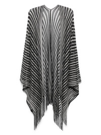 striped cape Highlights - Black - Open front - Fringed edge - Sequin embellishment - The item you receive may differ slightly from the item photographed. this is due to the artisanal nature with which all missoni products are constructed. Made in Italy Composition Polyimide 52%, Viscose 48% SIZE & FIT Model measurements Height 5 ft 10 in(1.78 m) Bust/Chest 32.67 in(83 cm) Hips 35.43 in(90 cm) Waist 23.22 in(59 cm) Measurement LENGTH 62.99 in(160 cm) WAIST 27.55 in(70 cm) FittingInformation Designed to be unstructured, offering a loose fit throughout Made with a midweight knit, this piece offers some stretch