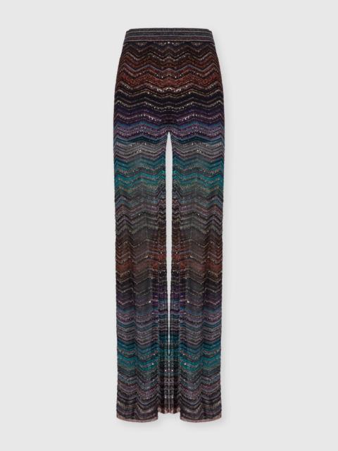 Wide Chevron Lamé Viscose Trousers with Sequins
