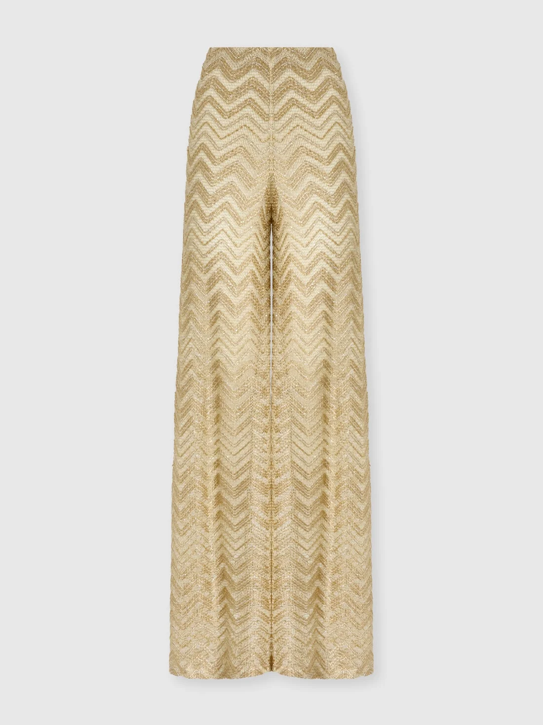MORE DETAILS - Women's wide-leg pants - Zigzag mesh knit - Viscose blend - Applied sequins Composition: EXTERNAL:76%Rayon, 18%Polyester, 6%Polyamide Care instructions: Ironing maximum temperature 110°C - without steam ; Dry cleaning in tetrachloroethene ; Do not tumble dry ; Do not wash ; Do not bleach Made in: Italy Product ID MC25SI01BV00ITS10C4