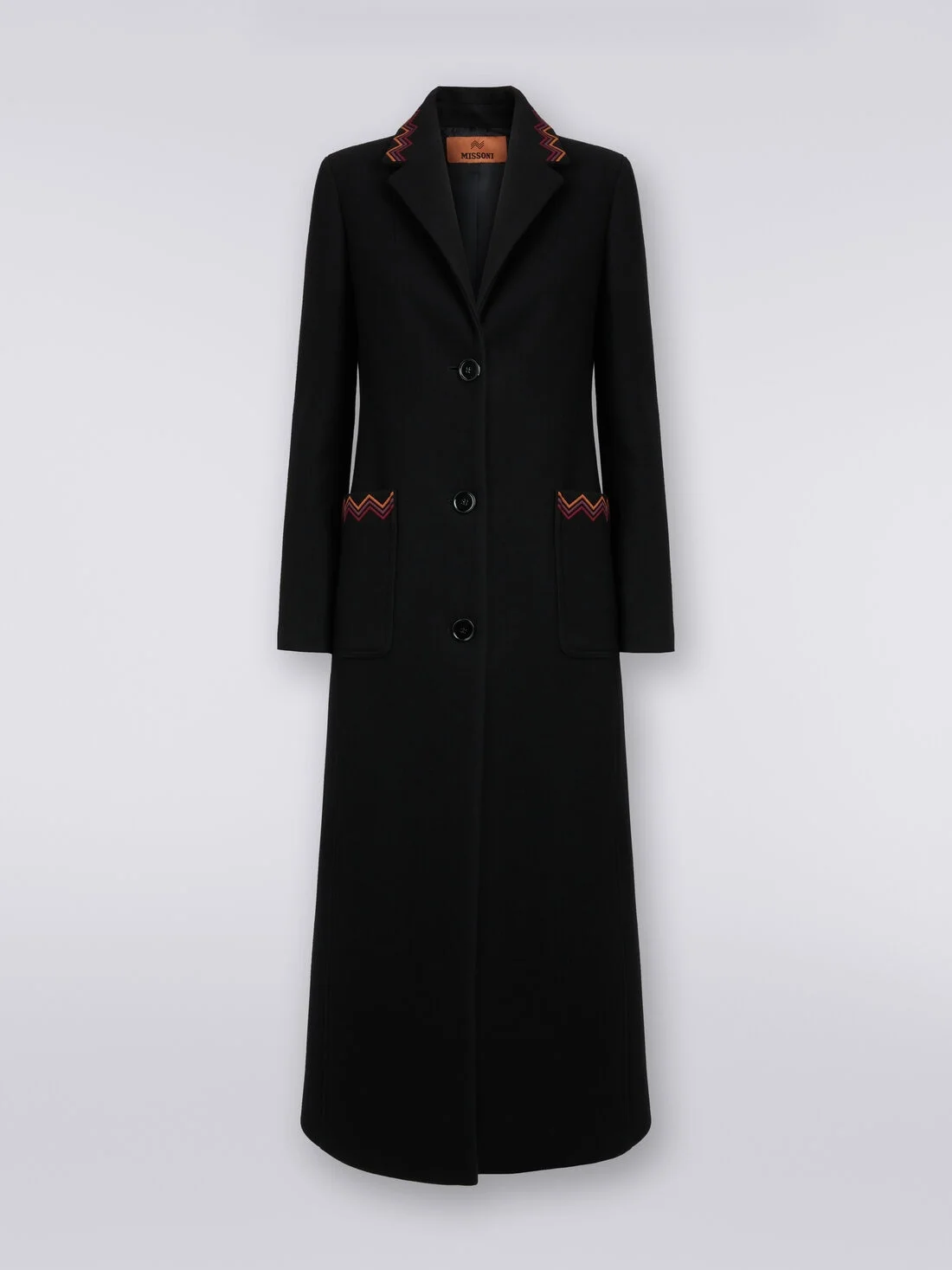 An emblem of style and sophistication, the women’s long single-breasted coat in wool blend cloth is distinguished by its timeless class and elegance. Featuring a plain finish, the garment is embellished with tailored details: finely embroidered zigzags on pockets and collar. MORE DETAILS - Women’s one-breasted long coat - Wool blend - Embroidered zigzags - Button placket Composition: EXTERNAL:80%Virgin wool, 20%Polyamide; TRIMMING:96%Polyester, 4%Ceramic; LINING : 100%Rayon Care instructions: Dry clean in tetrachloroethylene; Iron at a maximum temperature of 110°C; Do not treat with chlorine; Do not tumble dry Made in: Italy Product ID DS23WC0ZBW00OY93911