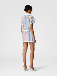 An original wrap mini skirt with a button closure and contrasting trim, decorated with the iconic zigzag pattern that made Missoni famous. Made from printed terry jersey, it combines lightness and style in one piece. MORE DETAILS - Women's mini skirt - Wrap design with contrasting edges - Iconic zig zag pattern - Printed terry cloth fabric Composition: EXTERNAL:100%Polyester Care instructions: Ironing maximum temperature 110°C - without steam ; Dry cleaning in tetrachloroethene ; Do not tumble dry ; Do not wash ; Do not bleach Made in: Italy Product ID MC25SH04BJ00OOSM9QJ