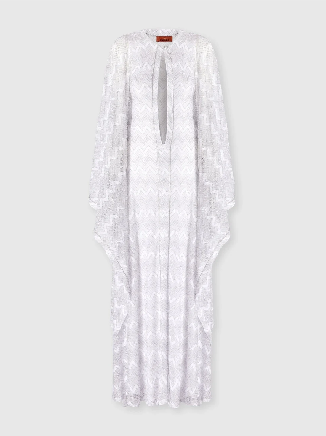 The Missoni Lame Viscose Long Cover Up Caftan captures the essence of timeless elegance with a touch of modern sensuality. The refined chevron pattern, enriched by lame reflections, envelops the body in a sophisticated luminosity, while the cut-out detail adds a note of discreet seduction. The long flared sleeves complete the design with a smooth and light movement. MORE DETAILS - Long cover-up kaftan - Viscose lame - Zigzag pattern - Sleeves Composition: EXTERNAL:91%Rayon, 9%Metal Fiber Care instructions: Ironing maximum temperature 110°C - without steam ; Dry cleaning in tetrachloroethene ; Do not tumble dry ; Do not wash ; Do not bleach Made in: Italy Product ID MS25SQ0ABR00ZXS01FJ