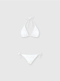 Straight from the maison's archive, the iconic chevron motif takes on new life in the viscose bikini by Missoni. The triangle bra and the briefs with side ties offer an adjustable fit, enhancing the silhouette with a refined sensuality. The addition of lame yarn gives a touch of light and dynamism, for a bright and sophisticated look. MORE DETAILS - Viscose and lame triangle bikini - Chevron pattern - Briefs with laces Composition: EXTERNAL:91%Rayon, 9%Metal Fiber; LINING : 80%Polyamide, 20%Elastane Care instructions: Hand wash ; Do not tumble dry ; Do not dry clean ; Do not iron ; Do not bleach Made in: Italy Product ID MC22SP00BR00ZXS01FJ