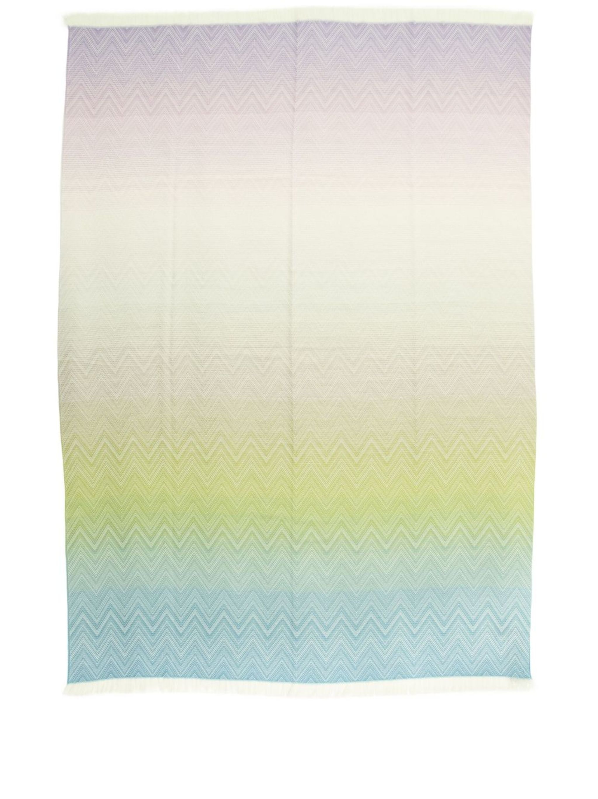 multicolour wool signature zigzag woven design gradient effect frayed brim rectangle shape The item you receive may differ slightly from the item photographed. This is due to the artisanal nature with which all Missoni products are constructed. Size & Fit Model Measurements: Bust: 0cm Height: 0cm Hips: 0cm Waist: 0cm Length: 190cm WIDTH: 130cm Fabric and Care Designer Style ID: 1C3PL99001100 Designer Colour: CIRO PLAID 130X190 CM MULTICOLOR 100% LANA Composition: Wool 100%