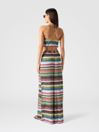 The Missoni zigzag motif is reimagined with a refined pixel effect in this women’s viscose lame top. The halter neckline enhances the silhouette, while the brilliance of the yarn and the refined texture elegantly express the maison’s modernity. MORE DETAILS - Women's halter-neck top - Raschel knit - Micro zigzag pixel-effect pattern - Viscose lame blend Composition: EXTERNAL:83%Rayon, 17%Metal Fiber Care instructions: Ironing maximum temperature 110°C - without steam ; Dry cleaning in tetrachloroethene ; Do not tumble dry ; Do not wash ; Do not bleach Made in: Italy Product ID MC23SK01BR014FSM9YJ
