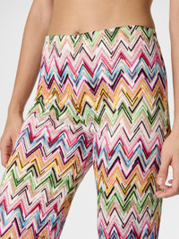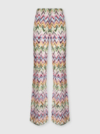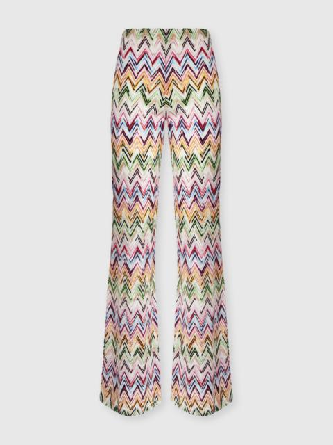 Flared pants in stretch viscose with lace pattern and zigzag motif