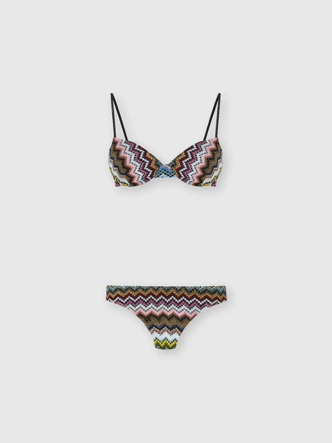 MORE DETAILS - Women's balconette bikini - Raschel knit - Micro zigzag pixel-effect pattern - Viscose lame Composition: EXTERNAL:83%Rayon, 17%Metal Fiber; LINING : 80%Polyamide, 20%Elastane Care instructions: Hand wash ; Do not tumble dry ; Do not dry clean ; Do not iron ; Cool Hand Wash ; Do not bleach Made in: Italy Product ID MC22SP01BR014FSM9YJ