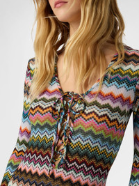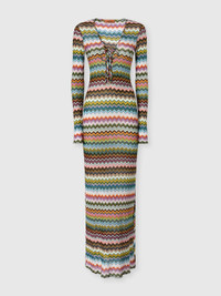 Long cover-up in lamé viscose with pixel-effect zigzag pattern