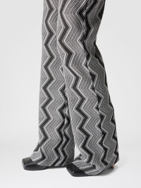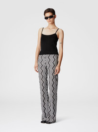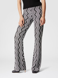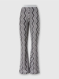 A tight succession of zigzags illuminated by lame enriches the flare viscose trousers. The model with elastic waistband features a flared hem. MORE DETAILS - Flare Pants - Elastic waistband - Flared bottom - Zigzag lame pattern Composition: EXTERNAL:66%Rayon, 34%Metal Fiber; LINING : 82%Polyester, 18%Elastane Care instructions: Hand wash ; Ironing maximum temperature 110°C - without steam ; Wash in net bag ; Do not tumble dry ; Dry flat ; Do not dry clean ; Wash separately ; Do not bleach Made in: Italy Product ID DS24WI1IBK042KS91M5