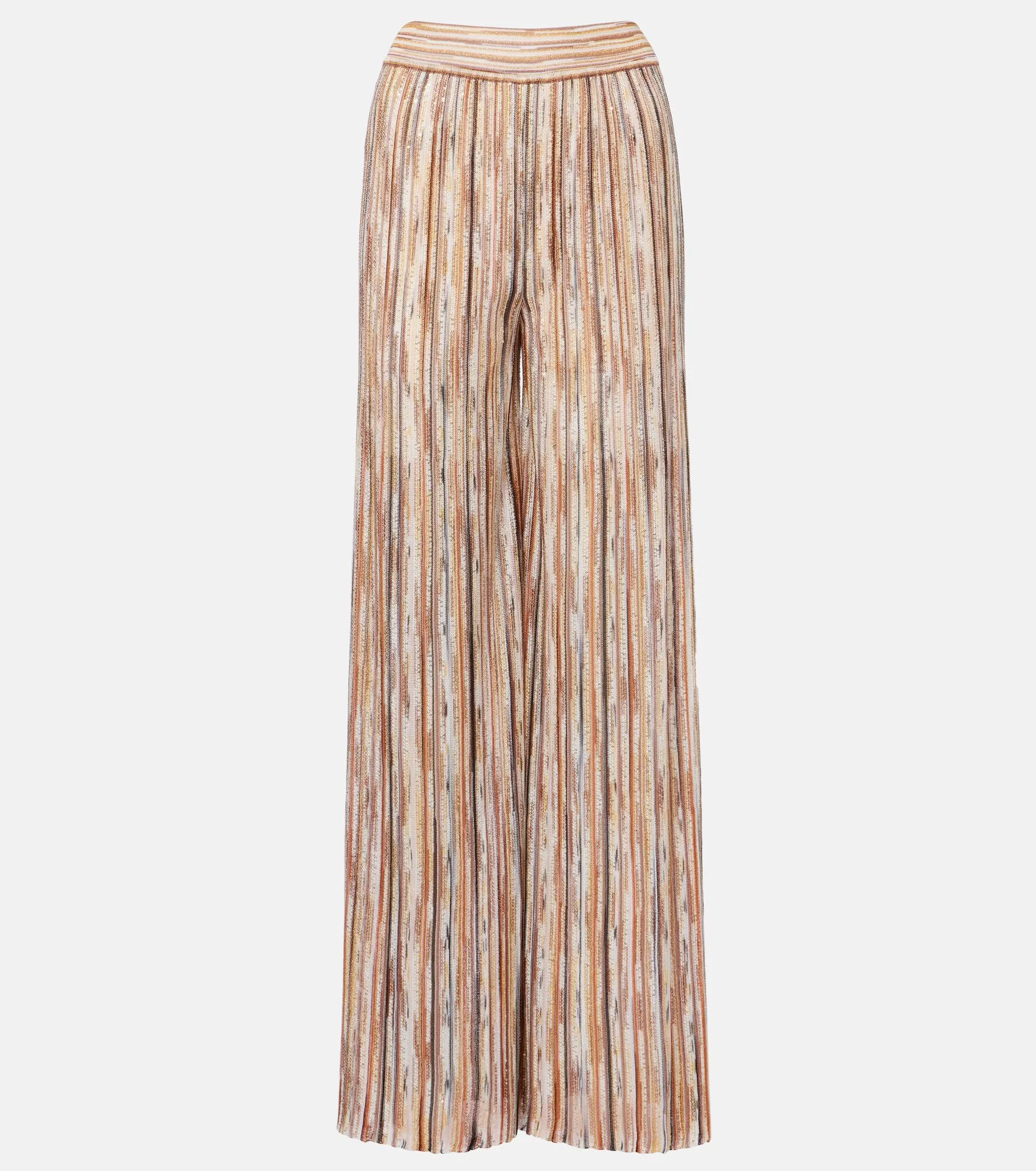 Missoni's iconic Zig Zag pattern was first introduced in the 1950s and is now a symbol of Italian luxury. Finished with the signature motif, these wide-leg pants are made from shimmering gold- and brown-hued lame. Product Details - Material: 81% viscose, 18% polyamide, 1% metallic fibres - Care instructions: dry clean - Made in Italy - Designer color name: Brown And Gold Tones - Item color: brown, gold - Lining: 82% polyester, 18% elastane - Elasticated waistband - Item number: P01108620 Size & Fit - True to size - Elasticated waist - Stretchy fabric - Wide-leg - High-waisted - The model seen in the picture is 178cm-5'10" and wearing a size IT 38