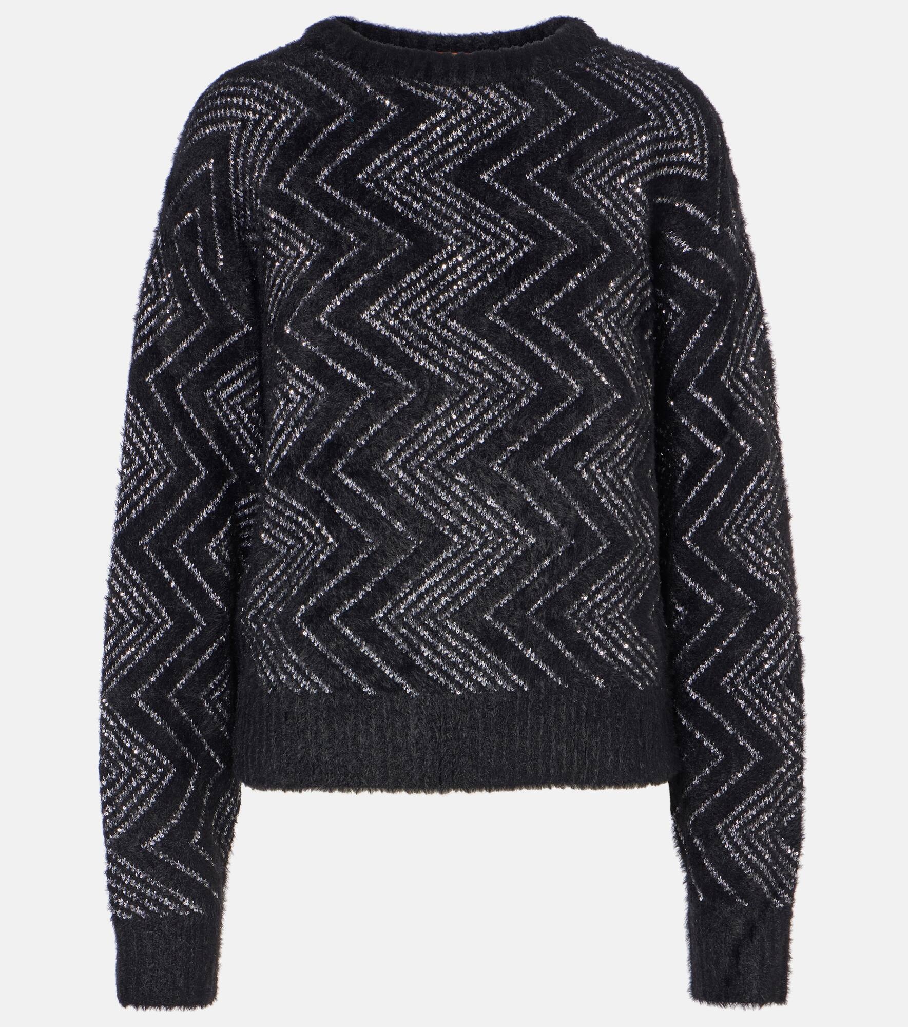 Product Details - Material: 65% polyamide, 35% polyester - Care instructions: hand wash - Made in Italy - Designer color name: Base Black and Zigzag White - Item number: P00982940 Size & Fit - True to size - Dropped shoulders - Designed for a loose fit - Stretchy fabric - Falls to the hip - The model seen in the picture is 178cm-5'10" and wearing a size IT 40