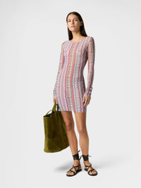 Long-Sleeve Zigzag Printed Tulle T-Shirt