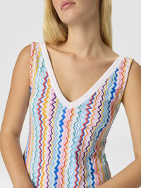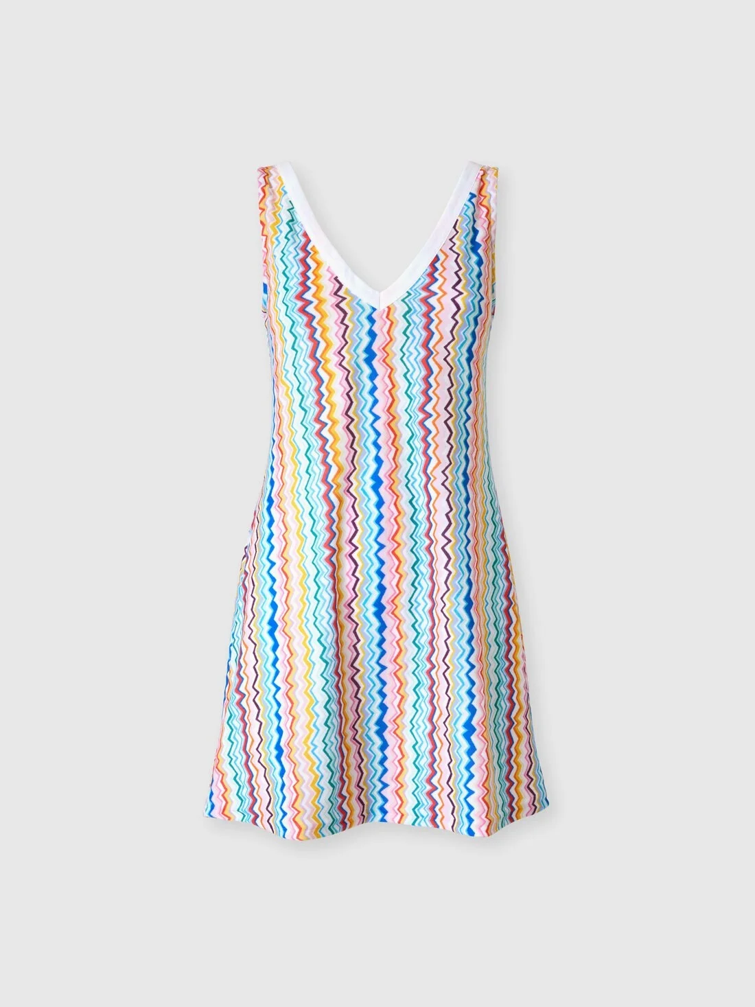 Lightweight and vibrant this short women’s beach dress celebrates Missoni’s unmistakable aesthetic through its iconic zigzag motif. With a double V‑neckline front and back the design naturally enhances the silhouette. It is perfect for summer days with effortless recognizable elegance. MORE DETAILS - Short cover-up dress - Iconic zig zag pattern - V-neckline Composition: EXTERNAL:100%Polyester Care instructions: Ironing maximum temperature 110°C - without steam ; Dry cleaning in tetrachloroethene ; Do not tumble dry ; Do not wash ; Do not bleach Made in: Italy Product ID MS25SG08BJ00OOSM9QJ