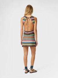 Short cover-up in lamé viscose with pixel-effect zigzag motif