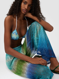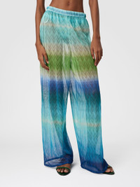 With a graphic and bold design, these straight-leg women’s trousers with raschel workmanship are printed with shaded micro and macro stripes that create a dynamic and distinctive visual effect. A versatile and characterful piece, perfect for completing contemporary looks with personality. MORE DETAILS - Women's straight-leg trousers - Raschel knit with shaded micro/macro stripe pattern - Zigzag background Composition: EXTERNAL:100%Polyester; Sewing thread:100%Polyester Care instructions: Ironing maximum temperature 110°C - without steam ; Dry cleaning in tetrachloroethene ; Do not tumble dry ; Iron with a cloth between ; Do not wash ; Do not bleach Made in: Italy Product ID MC25SI01BR013XS72NQ