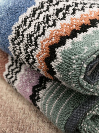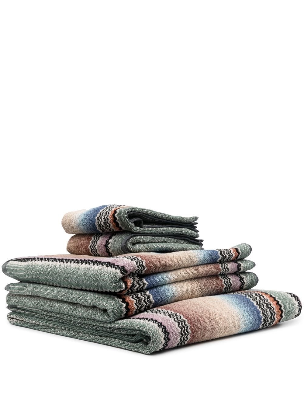 zig-zag print towel set zig-zag print towel set from Missoni Home featuring rectangle shape, zigzag print, green/multicolour, cotton and pack of five. Imported Composition Cotton 100%