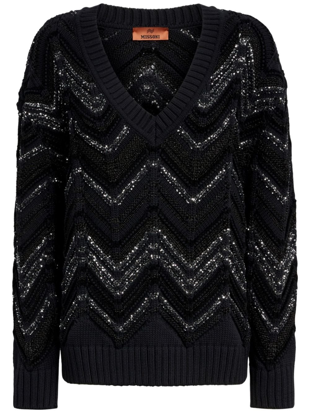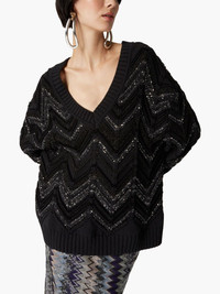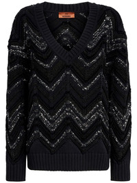Lurex/sequin-embellished jumper Highlights - Black - Knitted construction - Lurex detailing - Sequin embellishment - Plunging v-neck - Ribbed cuffs and hem - Drop shoulder Made in Italy Composition Rayon 30%, Cotton 25%, Polyamide 20%, Metallic Fibre 15%, Polyester 10%