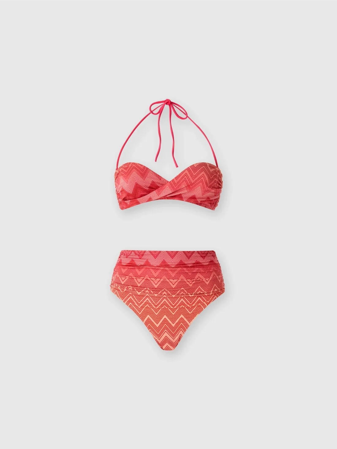 Stretch nylon bandeau bikini with Missoni's iconic lame zig-zag pattern. The bandeau bra is embellished with a refined central weave that adds a touch of sophisticated style and the high-waisted briefs ensure a comfortable fit and elongate the silhouette. MORE DETAILS - Stretch nylon bikini - Iconic zigzag pattern - High-waisted briefs - Braided bandeau top Composition: EXTERNAL:42%Metal Fiber, 42%Polyamide, 16%Elastane; LINING : 80%Polyamide, 20%Elastane Care instructions: Hand wash ; Do not tumble dry ; Do not dry clean ; Do not iron ; Do not bleach Made in: Italy Product ID MS25SP06BJ00LIS416I