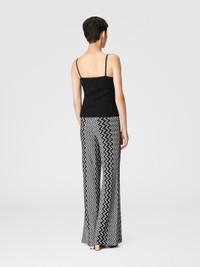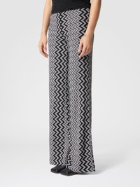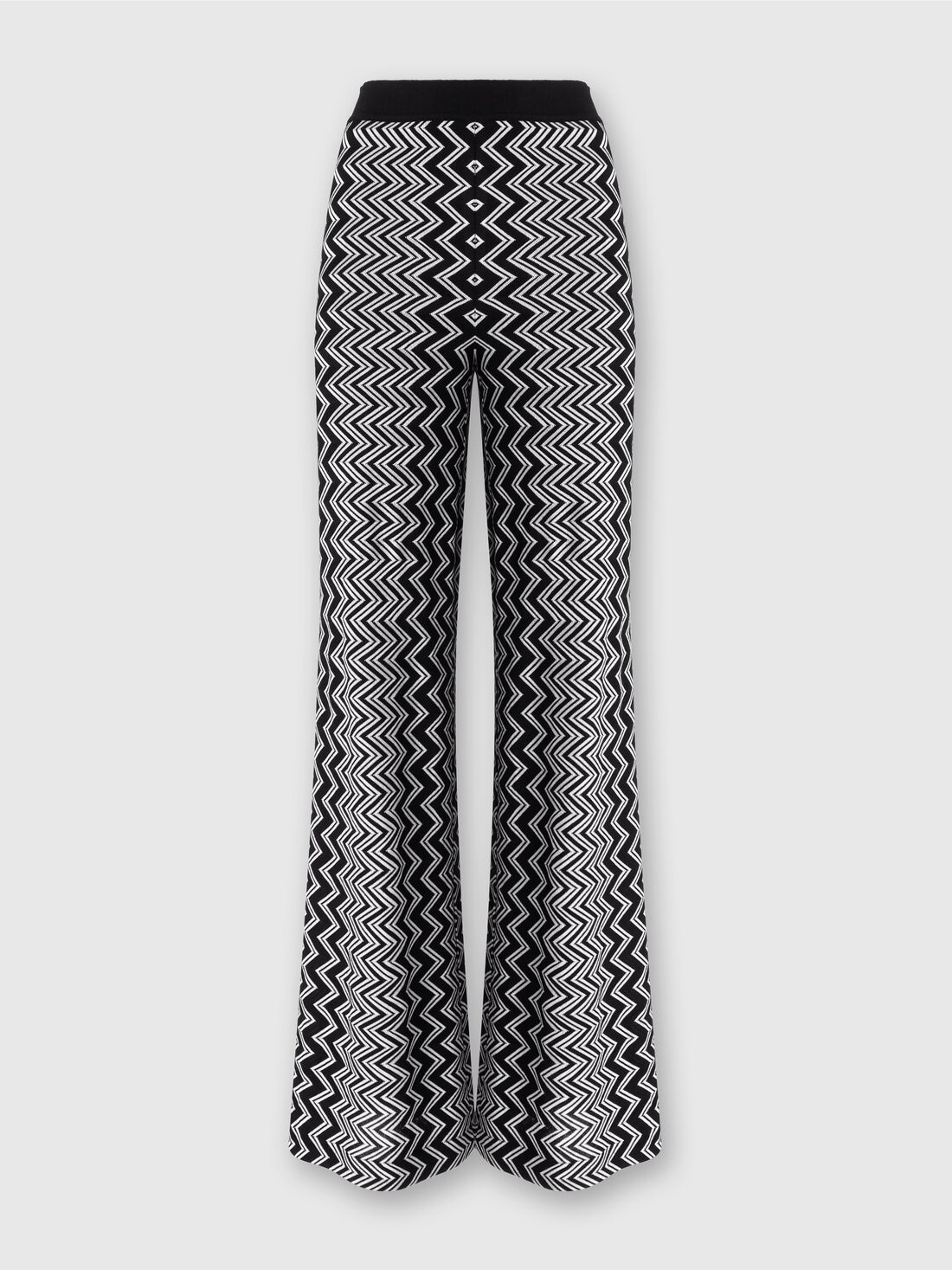 The juxtaposition of glossy and matte, guaranteed by the use of wool and viscose, offers palazzo trousers an unprecedented interpretation of one of Missoni's iconic motifs. MORE DETAILS - Palace Pants - Zigzag wool and viscose Composition: EXTERNAL:55%Wool, 45%Rayon; LINING : 77%Polyamide, 23%Elastane Care instructions: Dry cleaning in tetrachloroethene - mild process ; Dry flat ; Do not tumble dry ; Do not iron ; Do not wash ; Steam iron only ; Do not bleach Made in: Italy Product ID DS24WI1EBR00ZSS91LG