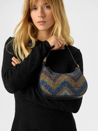 Zigzag fabric shoulder bag with sequins