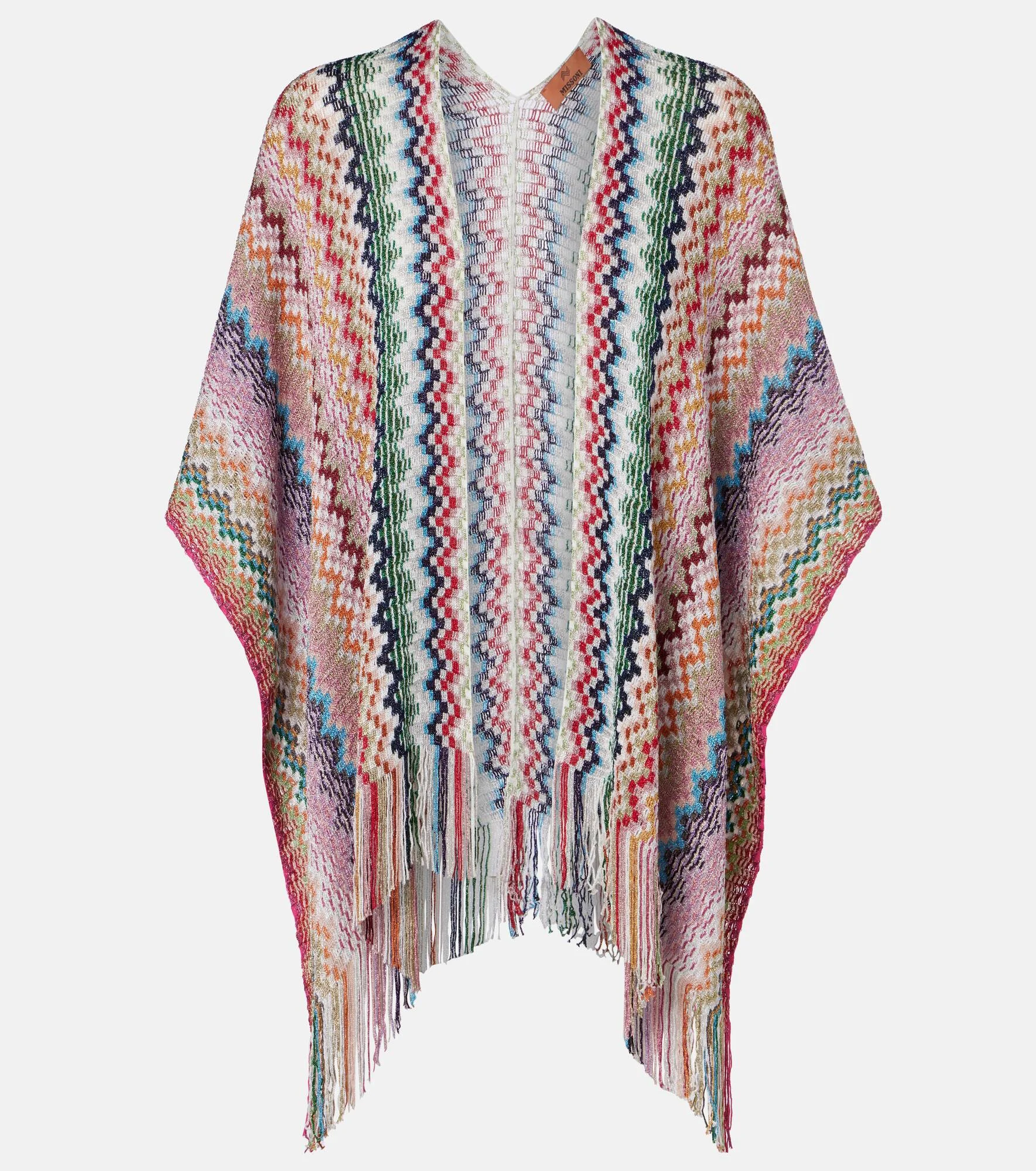 Missoni's iconic Zigzag pattern was first introduced in the 1950s and is now a symbol of Italian luxury. It appears all over this fringed poncho in multicolored tones. Product Details - Material: 66% viscose, 34% polyester - Care instructions: dry clean - Made in Italy - Color: multicoloured - Designer color name: Multicolor - Item number: P01155748 Size & Fit - Length 115cm-45.5" - Width 80cm-31.5" - Length of fringe 10cm-4"