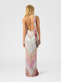 Iconic and sensual, this long halter-neck backless dress for women embodies bold, refined femininity. The adjustable neck tie adds a sophisticated touch, while the offset raschel knit recalls Missoni’s iconic zigzag, reimagined with a polished sensibility. MORE DETAILS - Halter neck long dress - Adjustable collar with ribbon - Zigzag offset raschel knit - Viscose and lame filament blend Composition: EXTERNAL:88%Rayon, 12%Metal Fiber; LINING : 82%Polyester, 18%Elastane Care instructions: Ironing maximum temperature 110°C - without steam ; Dry cleaning in tetrachloroethene - mild process ; Dry flat ; Do not tumble dry ; Do not wash ; Do not bleach Made in: Italy Product ID DS25WG37BR0144S417W