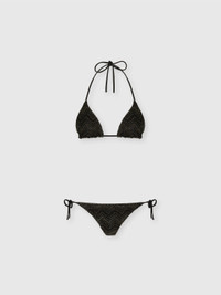 Straight from the maison's archive, the iconic chevron motif takes on new life in the viscose bikini by Missoni. The triangle bra and the briefs with side ties offer an adjustable fit, enhancing the silhouette with a refined sensuality. The addition of lame yarn gives a touch of light and dynamism, for a bright and sophisticated look. MORE DETAILS - Viscose and lame triangle bikini - Chevron pattern - Briefs with laces Composition: EXTERNAL:91%Rayon, 9%Metal Fiber; LINING : 80%Polyamide, 20%Elastane Care instructions: Hand wash ; Do not tumble dry ; Do not dry clean ; Do not iron ; Do not bleach Made in: Italy Product ID MC22SP00BR00ZXS91N1