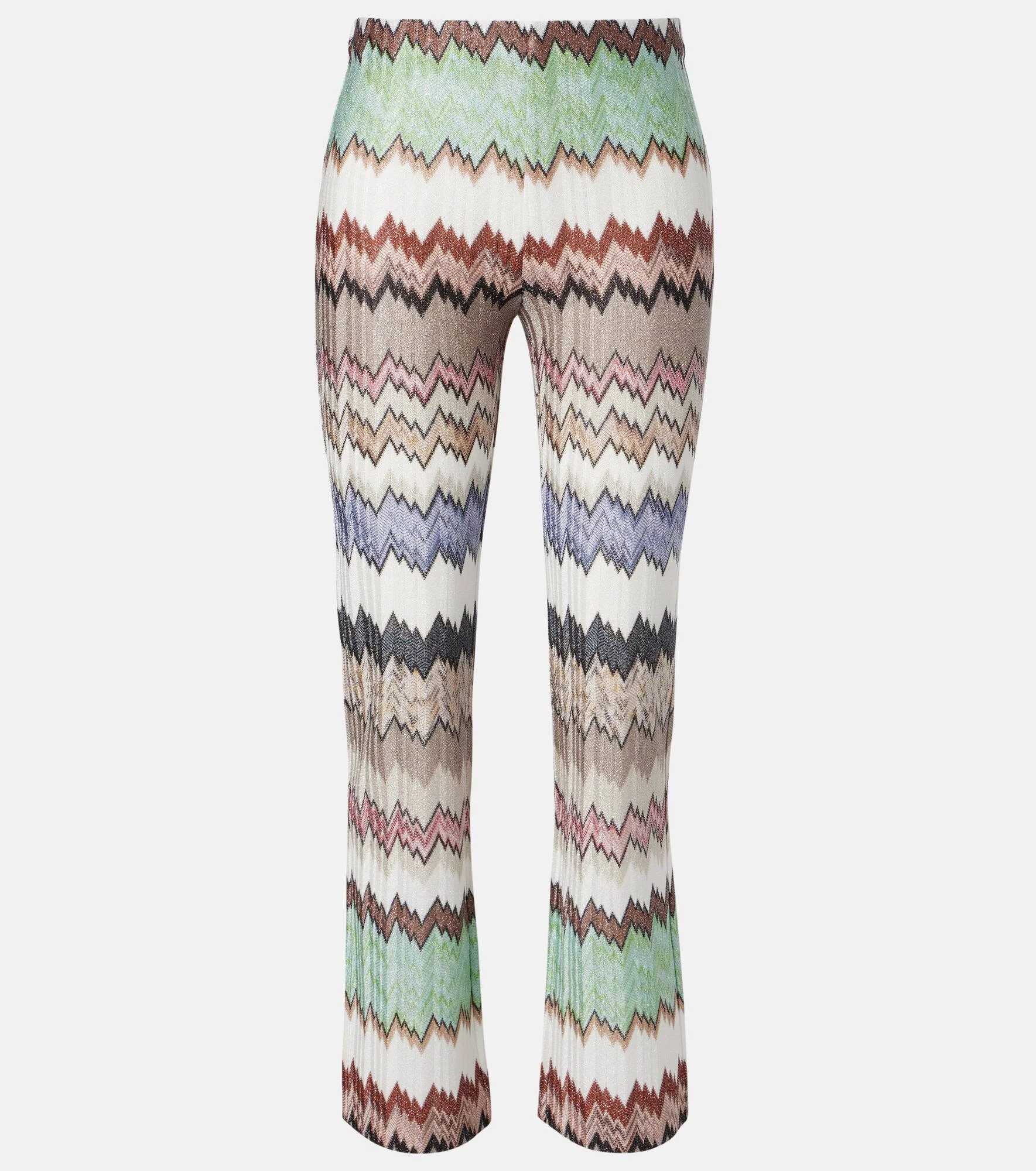 Missoni's iconic Zigzag pattern was first introduced in the 1950s and is now a symbol of Italian luxury. The beloved code is featured all over these lame pants, coming in a cropped, straight-leg silhouette. Product Details - Material: 83% viscose, 17% metallic fibres - Care instructions: dry clean - Made in Italy - Color: multicoloured - Designer color name: Multicolor With White Base - Lining: 100% polyester - Elasticated waistband - Item number: P01108709 Size & Fit - True to size - Stretchy fabric - Straight leg - The model seen in the picture is 178cm-5'10" and wearing a size IT 38