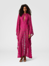 The Missoni Lame Viscose Long Cover Up Caftan captures the essence of timeless elegance with a touch of modern sensuality. The refined chevron pattern, enriched by lame reflections, envelops the body in a sophisticated luminosity, while the cut-out detail adds a note of discreet seduction. The long flared sleeves complete the design with a smooth and light movement. MORE DETAILS - Long cover-up kaftan - Viscose lame - Zigzag pattern - Sleeves Composition: EXTERNAL:91%Rayon, 9%Metal Fiber Care instructions: Ironing maximum temperature 110°C - without steam ; Dry cleaning in tetrachloroethene ; Do not tumble dry ; Do not wash ; Do not bleach Made in: Italy Product ID MS25SQ0ABR00ZXS5074