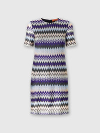 Short-sleeved mini-dress in zig zag lamé viscose