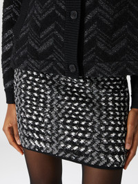 The silhouette-enhancing design features the ellitic waist miniskirt. Crafted from viscose-blend knit, the style is embellished with a distinctive twisted zigzag pattern, lit up by lame slub knits. MORE DETAILS - Mini skirt with elastic waistband - Twisted zig zag workmanship - Lame slub pattern Composition: EXTERNAL:45%Rayon, 28%Polyamide, 18%Polyester, 9%Elastane Care instructions: Dry cleaning in tetrachloroethene - mild process ; Hand wash ; Ironing maximum temperature 110°C - without steam ; Wash in net bag ; Iron inside out ; Dry flat ; Do not tumble dry ; Iron with a cloth between ; Do not bleach Made in: Italy Product ID DS24WH0UBK040HS91KG