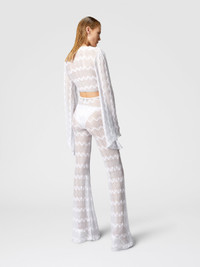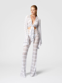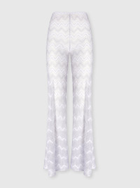 The flare viscose cover-up trousers combine sensuality and sophistication. The flared leg design elongates the silhouette, while the lightweight, sheer fabric, enlivened by the iconic zigzag pattern, plays with subtle transparencies. The metallic reflections of lame complete the look with a bright and sophisticated note. MORE DETAILS - Cover-up trousers - Flare Pattern - Viscose and lame - Zig zag pattern Composition: EXTERNAL:91%Rayon, 9%Metal Fiber Care instructions: Ironing maximum temperature 110°C - without steam ; Dry cleaning in tetrachloroethene ; Do not tumble dry ; Do not wash ; Do not bleach Made in: Italy Product ID MC25SI00BR00ZXS01FJ