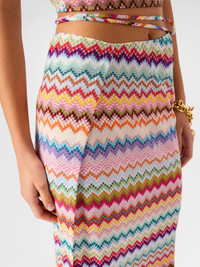 Long pareo skirt in lamé viscose with pixel-effect zigzag pattern