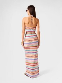 MORE DETAILS - Women's long wrap skirt with adjustable tie - Raschel knit - Micro zigzag pixel-effect pattern - Viscose lame Composition: EXTERNAL:83%Rayon, 17%Metal Fiber Care instructions: Ironing maximum temperature 110°C - without steam ; Dry cleaning in tetrachloroethene ; Do not tumble dry ; Do not wash ; Do not bleach Made in: Italy Product ID MC26SH02BR014FSM9WV