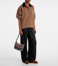 Zigzag leather-trimmed shoulder bag
