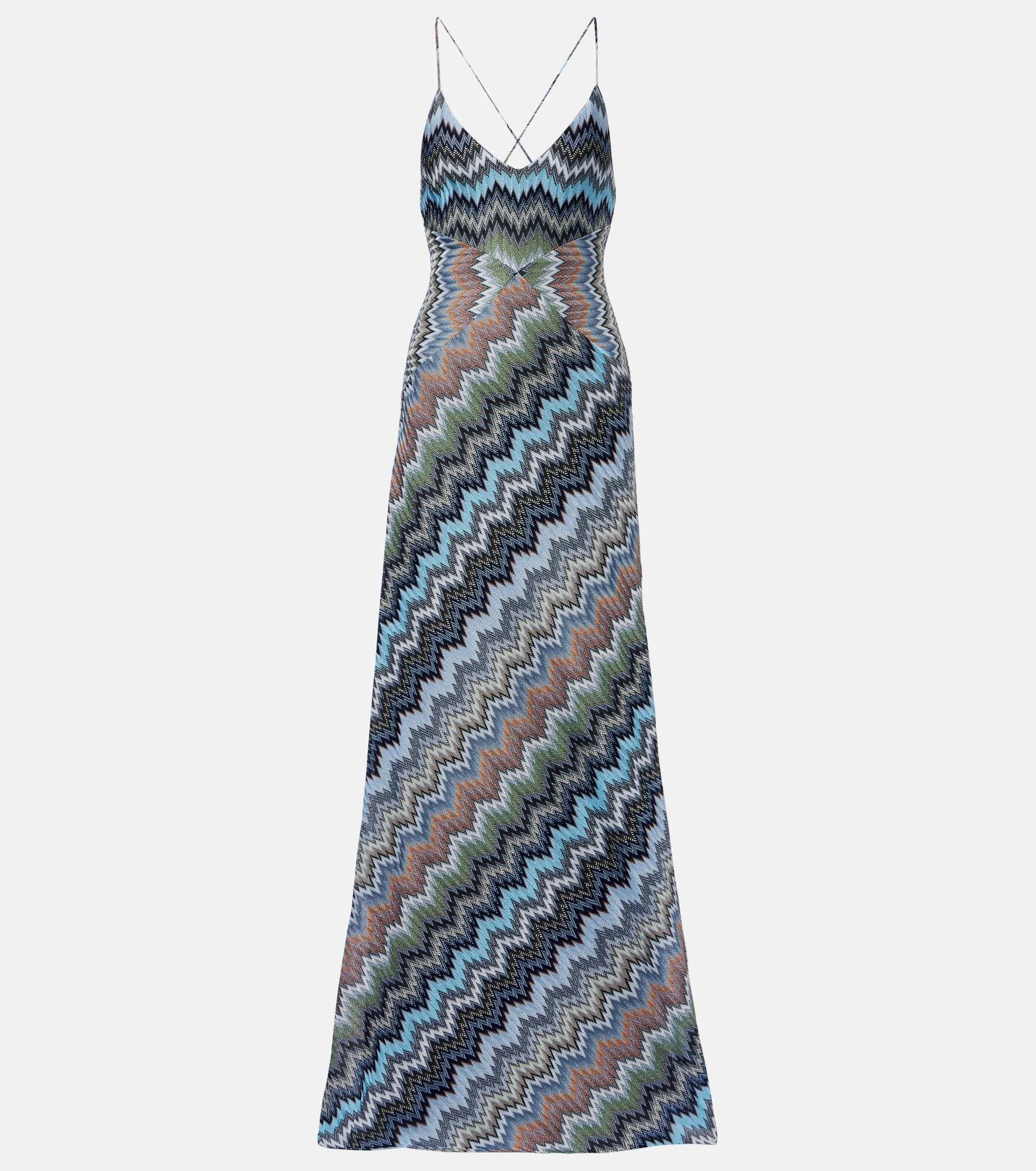 Missoni’s craftsmanship, iconic patterns, and bold color palettes bring a sense of sophisticated joy to dressing. Carefully crafted in Italy, this maxi dress features the brand's iconic Zigzag pattern, a plunging neckline, and a floor-sweeping silhouette. Product Details - Material: 100% viscose - Care instructions: dry clean - Made in Italy - Color: multicoloured - Designer color name: Multicolor Blue Tones - Lining: 82% polyester, 18% elastane - Item number: P01108688 Size & Fit - Fits small to size - we recommend trying one size larger - Low back - Fitted - Slightly stretchy fabric - The model seen in the picture is 178cm-5'10" and wearing a size IT 40
