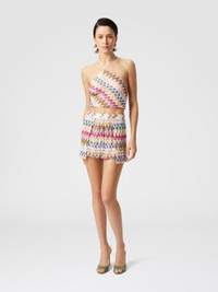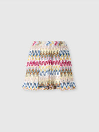 The doubled shorts in lame viscose lace offer a sophisticated and contemporary elegance. The model, characterized by a zigzag pattern, combines the charm of lace with the brightness of lame. The double texture and delicate finish enrich the design, while the high waist and defined silhouette add a touch of sophistication. MORE DETAILS - Doubled Shorts - Lame viscose lace - Zigzag pattern Composition: EXTERNAL:95%Rayon, 5%Metal Fiber Care instructions: Ironing maximum temperature 110°C - without steam ; Dry cleaning in tetrachloroethene ; Do not tumble dry ; Do not wash ; Do not bleach Made in: Italy Product ID MS25SI05BR0000S01FQ