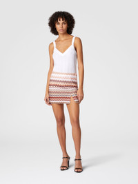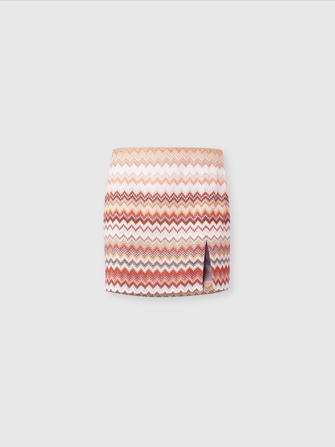 With its side slit, this serrated zigzag mini skirt shines elegantly, thanks to the touches of lame that illuminate the texture. The sophisticated and unique raschel workmanship tells the story of Missoni's passion for handcrafted knitwear, making this garment a true icon of style and craftsmanship. MORE DETAILS - Long model cardigan - Iconic serrated zigzag pattern - Lame filaments - V-neck Composition: EXTERNAL:79%Rayon, 11%Metal Fiber, 10%Polyamide; INTERNAL REINFORCEMENT:100%Polyester Care instructions: Dry cleaning in tetrachloroethene - mild process ; Hand wash ; Steam iron only ; Dry flat ; Do not tumble dry ; COOL HAND WASH ; Do not iron ; Do not bleach Made in: Italy Product ID DS25SH0DBR00ZVS10BB