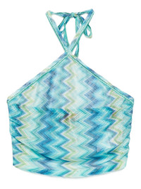 zigzag-motif top Highlights - Light blue - Halterneck tie fastening - Sleeveless - Open back - The item you receive may differ slightly from the item photographed. this is due to the artisanal nature with which all missoni products are constructed. Made in Italy Composition Polyester 100%, Viscose 60%, Metallic Fibre 40% Washing instructions Dry Clean Only