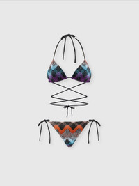 Revamping a style icon with modernity, the Missoni bikini features the signature zigzag pattern on a base of mesh in viscose and lame. The long, customizable ties add a dynamic and creative note, ensuring a look that stands out. MORE DETAILS - Women's bikini - Customizable ties - Iconic zig zag pattern - Mesh design Composition: EXTERNAL:73%Rayon, 14%Metal Fiber, 13%Polyamide; LINING : 80%Polyamide, 20%Elastane Care instructions: Hand wash ; Do not tumble dry ; Do not dry clean ; Do not iron ; Do not bleach Made in: Italy Product ID MS25SP0HBR012SSM9QM