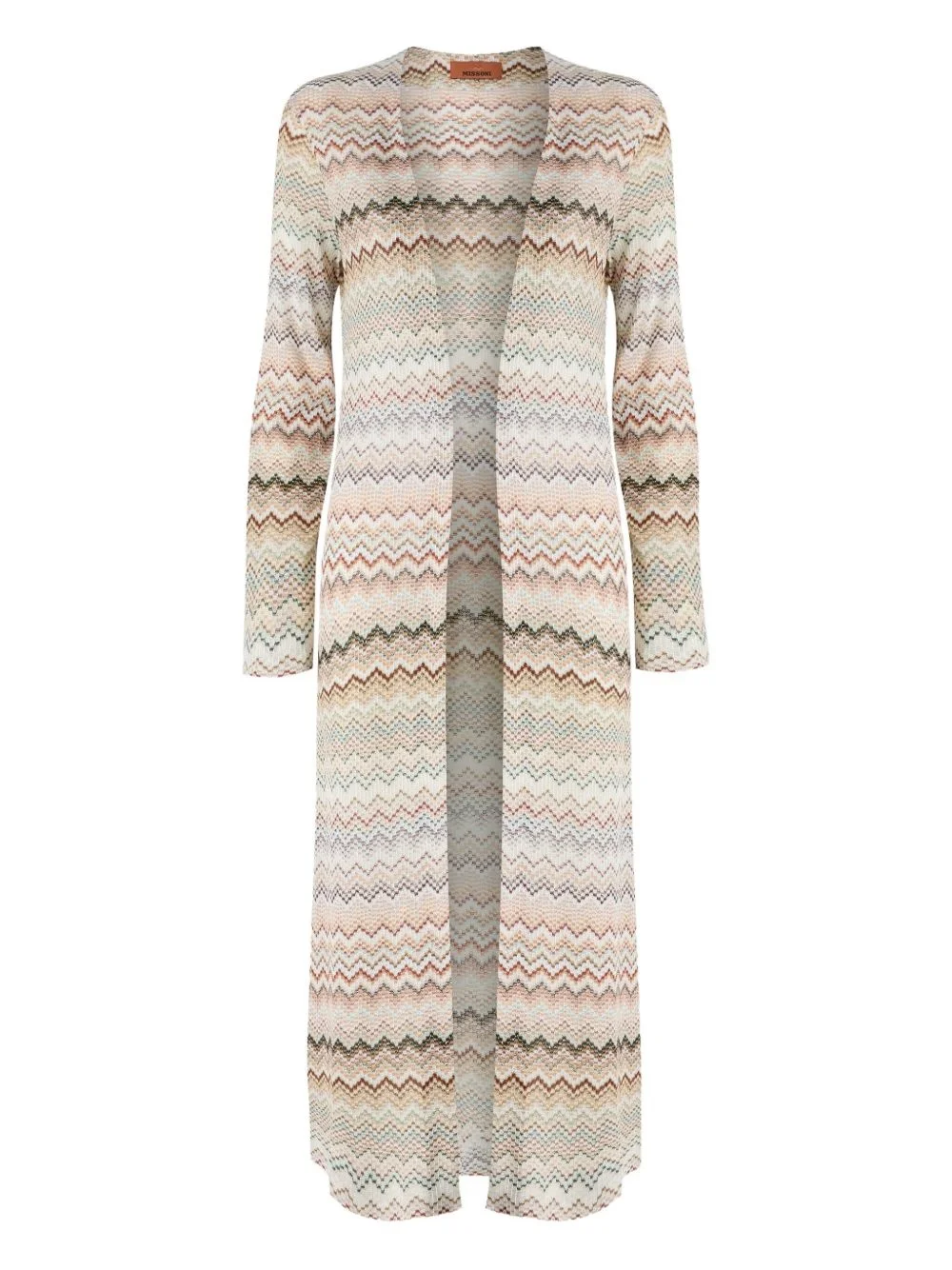 zigzag-pattern cardi-coat Highlights - Multicolour - Knitted construction - Open front - Long sleeves - Straight hem - The item you receive may differ slightly from the item photographed. this is due to the artisanal nature with which all missoni products are constructed. Made in Italy Composition Rayon 96%, Metallic Fibre 2%, Polyamide 2%