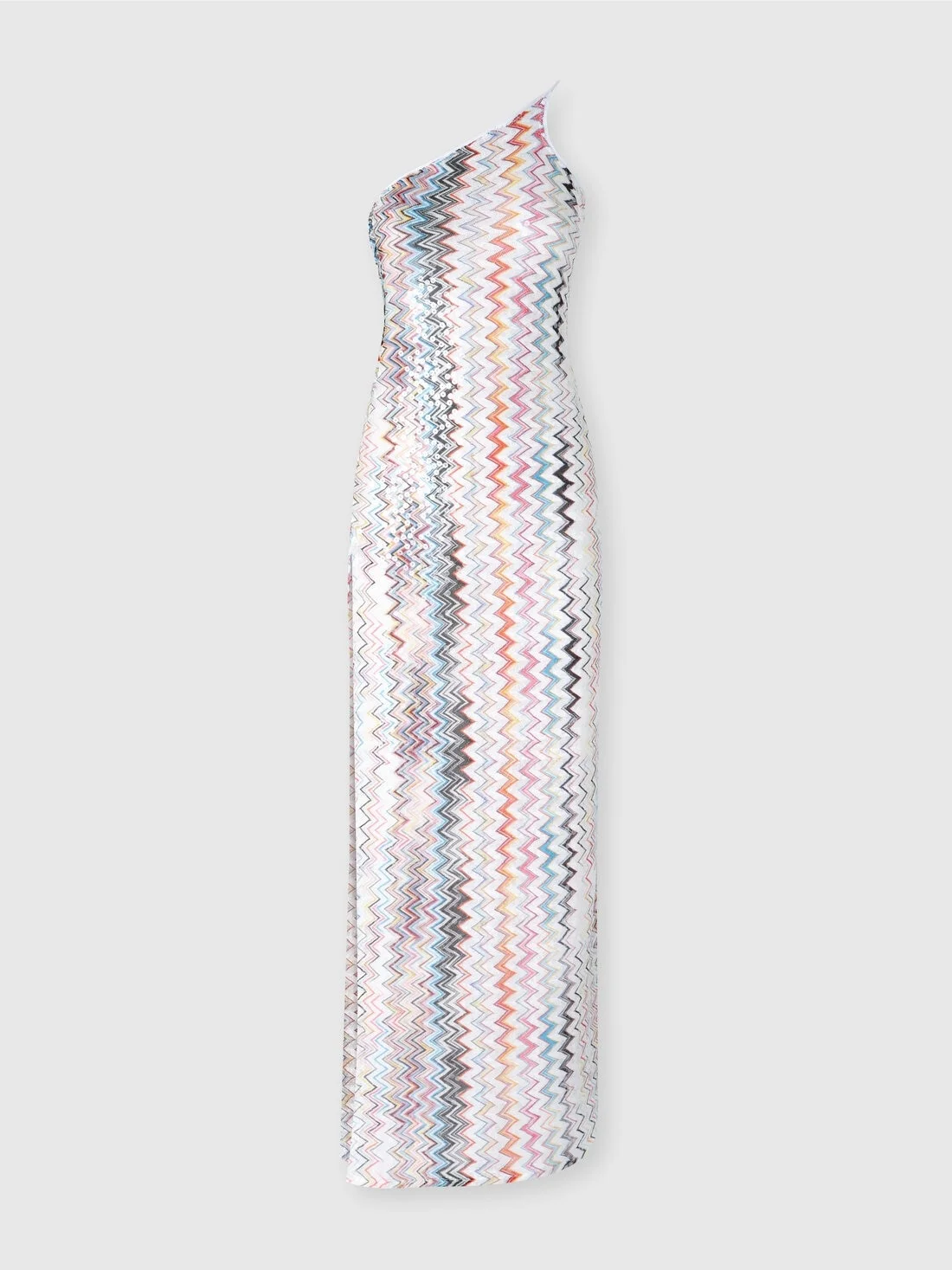 Long one-shoulder cover-up with zig zag pattern